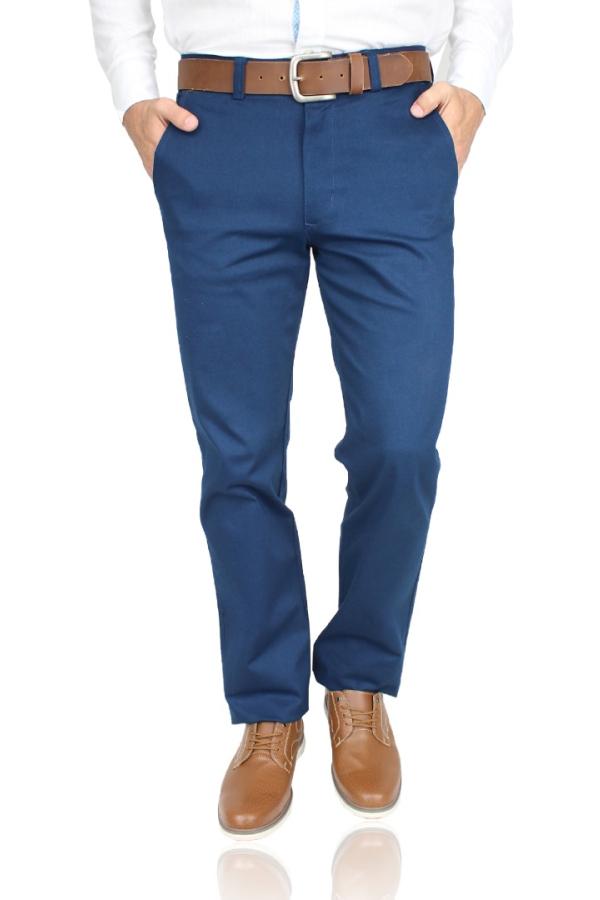 Pantalón Corte Regular Color Azul Plúmbago De Algodón Para Caballero